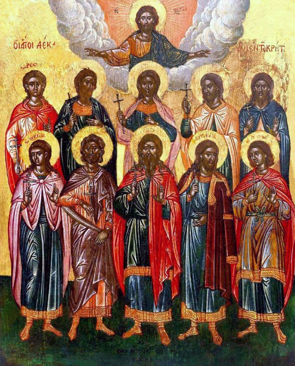 Десять мучеников Критских Феодул, Саторнин, Евпор, Геласий, Евникиан, Зотик, Помпий, Агафопус, Василид и Еварест пострадали при Декии в III в. Когда язычники выдали святых мучеников судье Крита, тот велел водить их по всем идольским капищам, понуждая принести жертву и угрожая в противном случае пытками, но все они оставались непреклонны. Затем в течение тридцати дней их подвергали публичному осмеянию, позволяя всякому прохожему осыпать их оскорблениями, бить кулаками, забрасывать камнями, плевать в лицо. Наконец судья решил предать смерти всех десятерых, ибо своим примером они воодушевляли прочих христиан Крита. Им переломали кости и после иных жестоких пыток обезглавили, даровав тем самым победный венец вечной славы.
