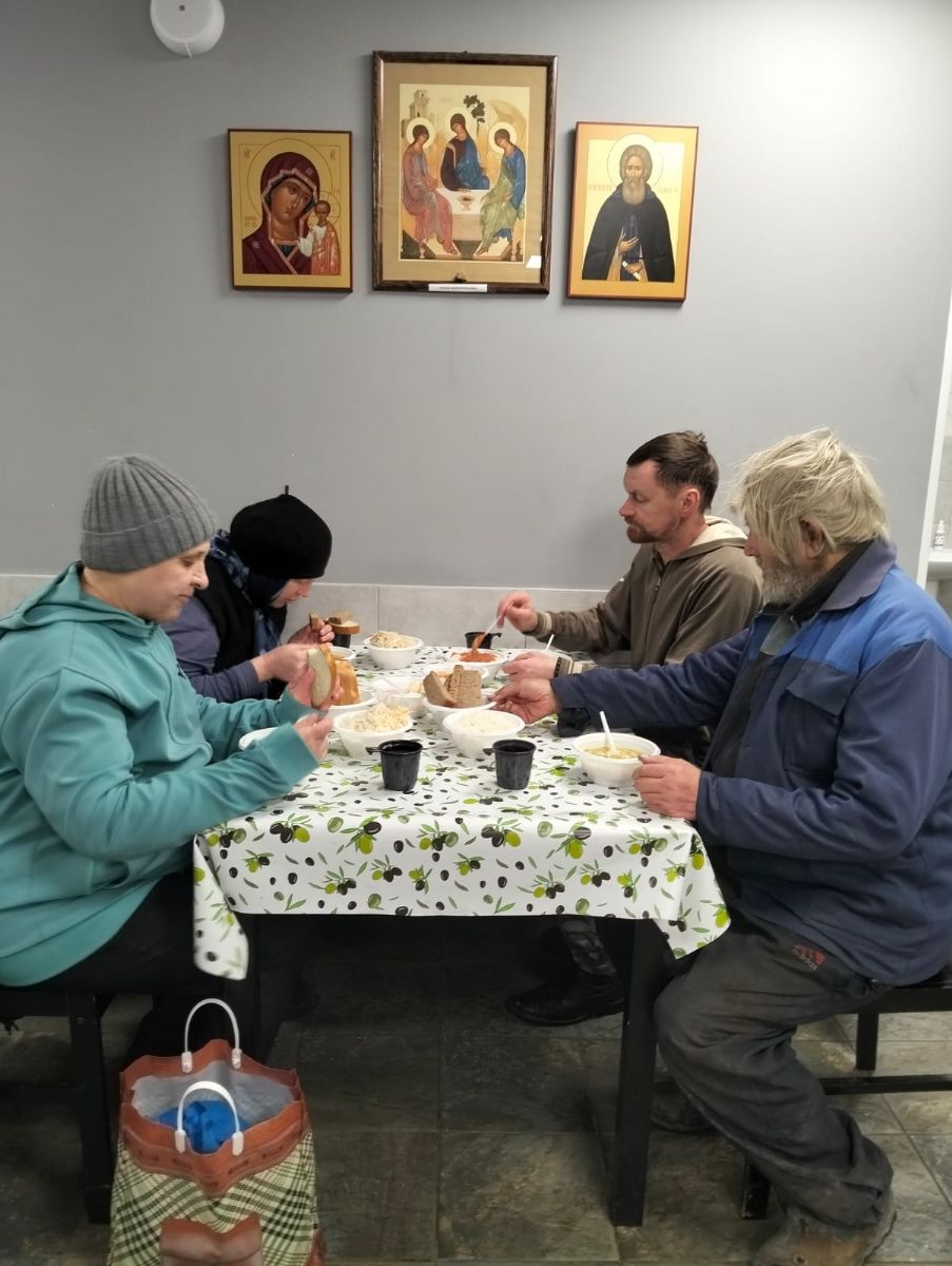 Зачастую люди смущаются подавать милостыню – не будет ли поданная милостыня во вред человеку (например человеку пьющему?) Задача нашего проекта — удовлетворение одной из базовых человеческих потребностей. В трапезной мы даём самое необходимое — еду. Вы тоже можете поучаствовать в кормлении нуждающихся, в приобретении для них сладостей на Рождество Христово, и чуть позже – для пасхального угощения, а зимой востребованы лук и чеснок. Продукты можно приносить к 12 часам (на трапезу люди приходят к 12.30 (первая смена). Трапезная находится в 100 м от Уточьей башни (около шлагбаума) – карта здесь.