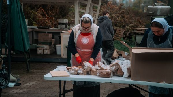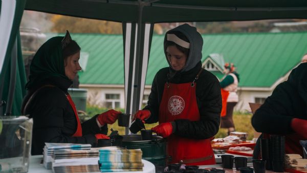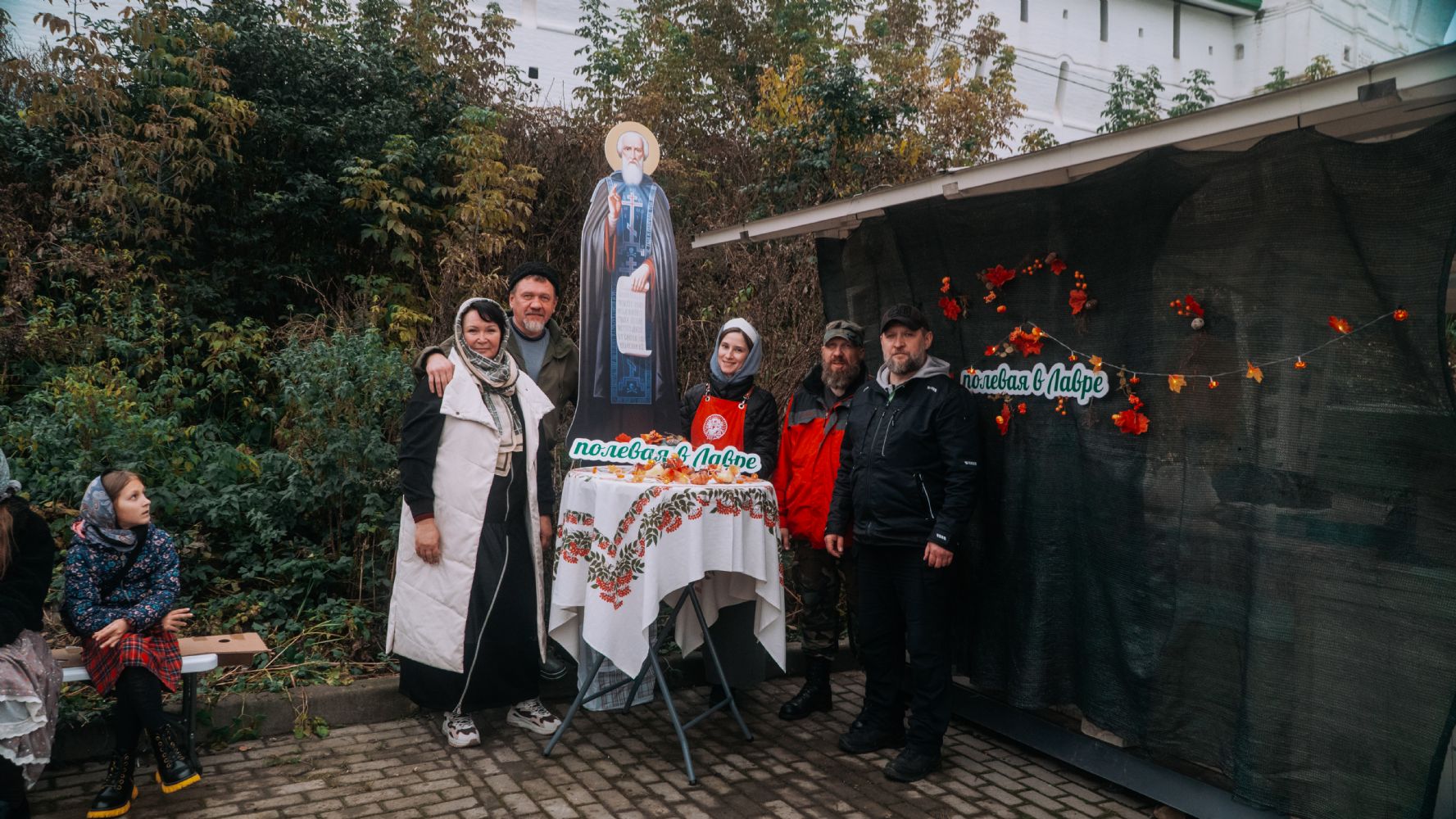 После литургии на полевой кухне было накормлено более около 2500 паломников, благодаря неизменной помощи казаков из ХКО «Котловка», братьев и сестер движения «Сорок Сороков» и АНО «Добропомощь». На обед была каша с тунцом и свежим лаврским хлебом, а согреться можно было ароматным чаем со сладостями.