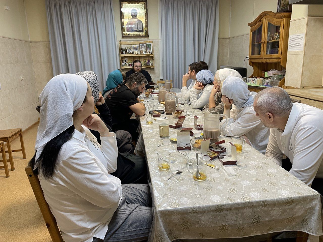 В теплой и душевной обстановке за чаепитием были обсуждены важные вопросы, касающиеся поведения и несения различных послушаний, в частности, дежурства в Троицком соборе у раки преподобного Сергия.