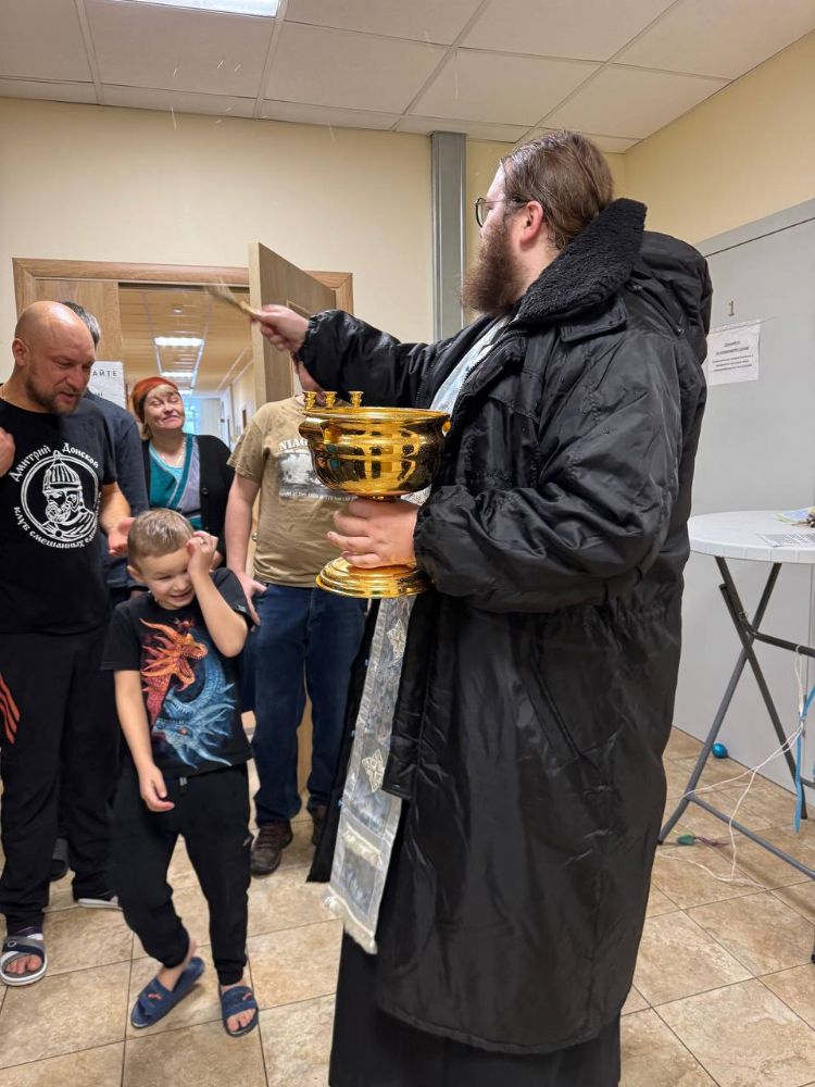 На праздник Крещения отец Борис освятил дома Паломнической слободы и, конечно, волонтёрский домик, окропив все комнаты святой водой.