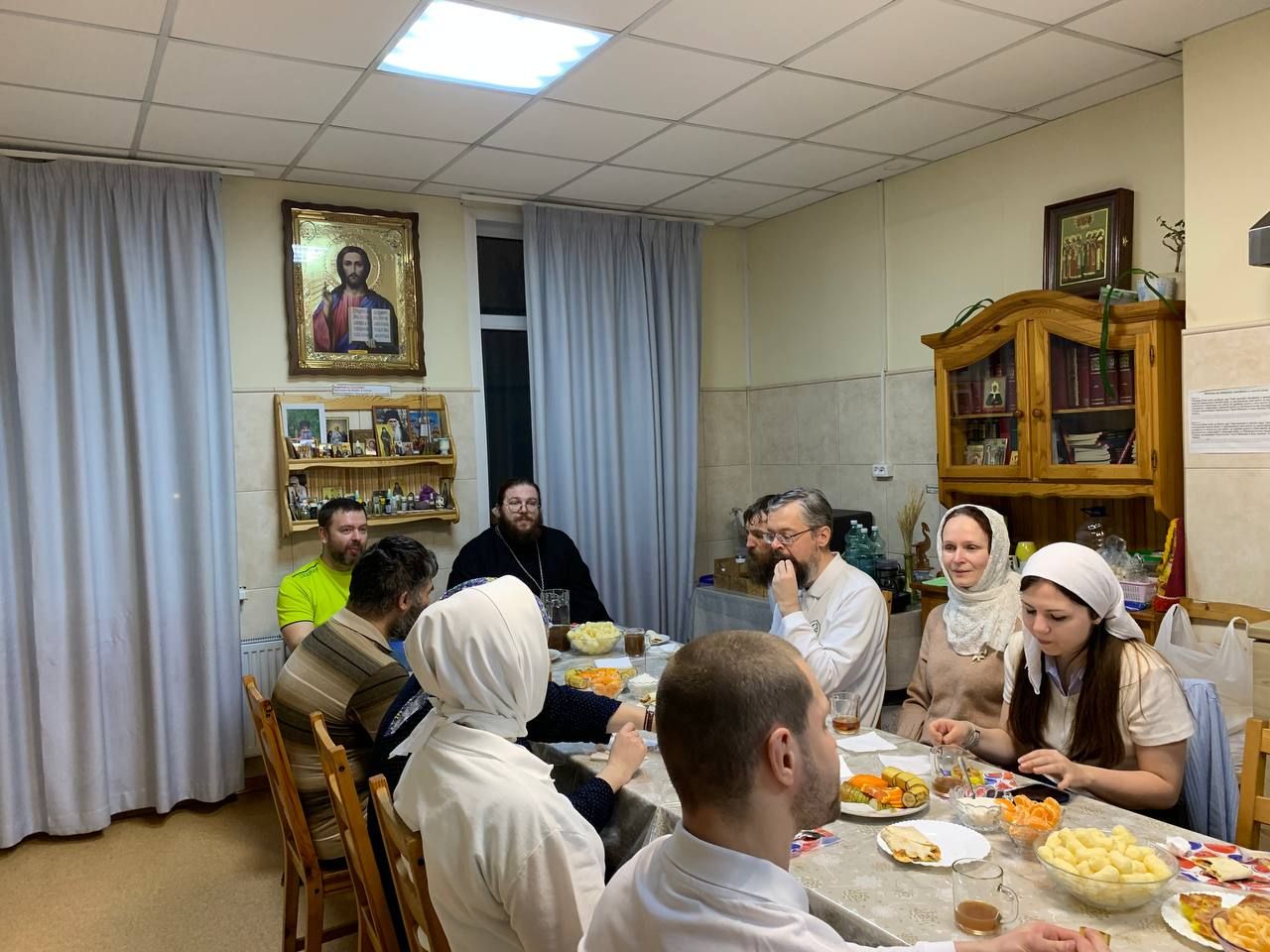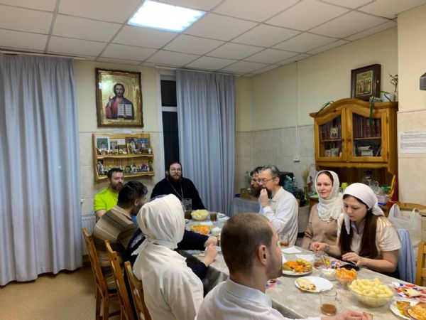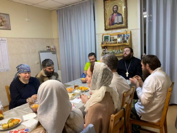 С праздником Торжества Православия поздравить волонтеров пришли иеромонах Борис и Виктор из «Русской общины».