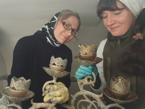 Подготовка к празднику совершалась не только в трапезной и мастерских. Сообща натирали до блеска огромное паникадило Успенского собора, помогали в уборке храмов и даже алтарей, чтобы достойно встретить Светлое Христово Воскресение. Не оставался без внимания и общий дом: в нём наводили порядок, а самые искусные и заботливые братья своими руками подлатали плитку на полу.