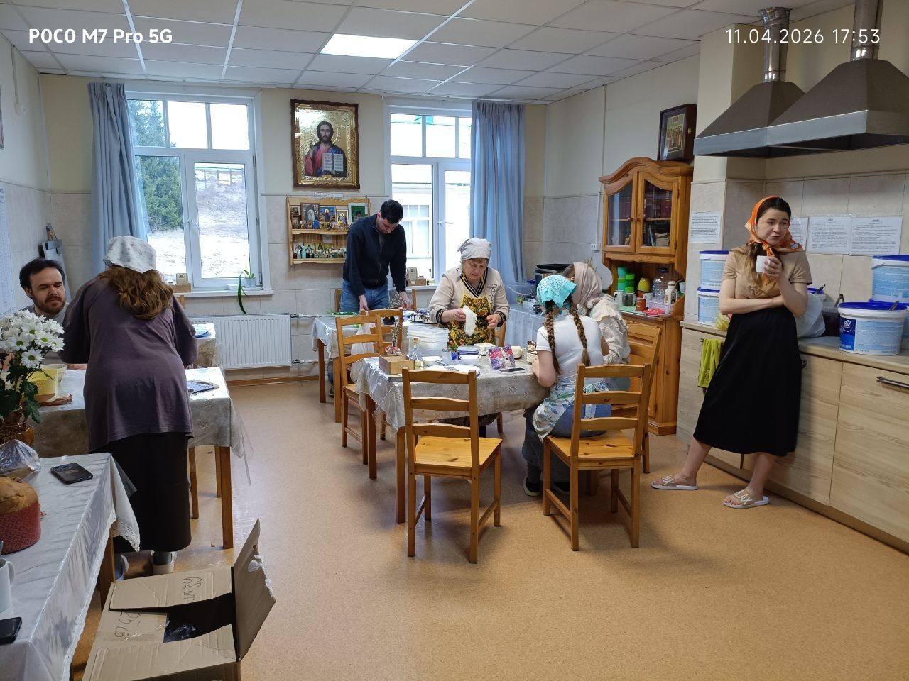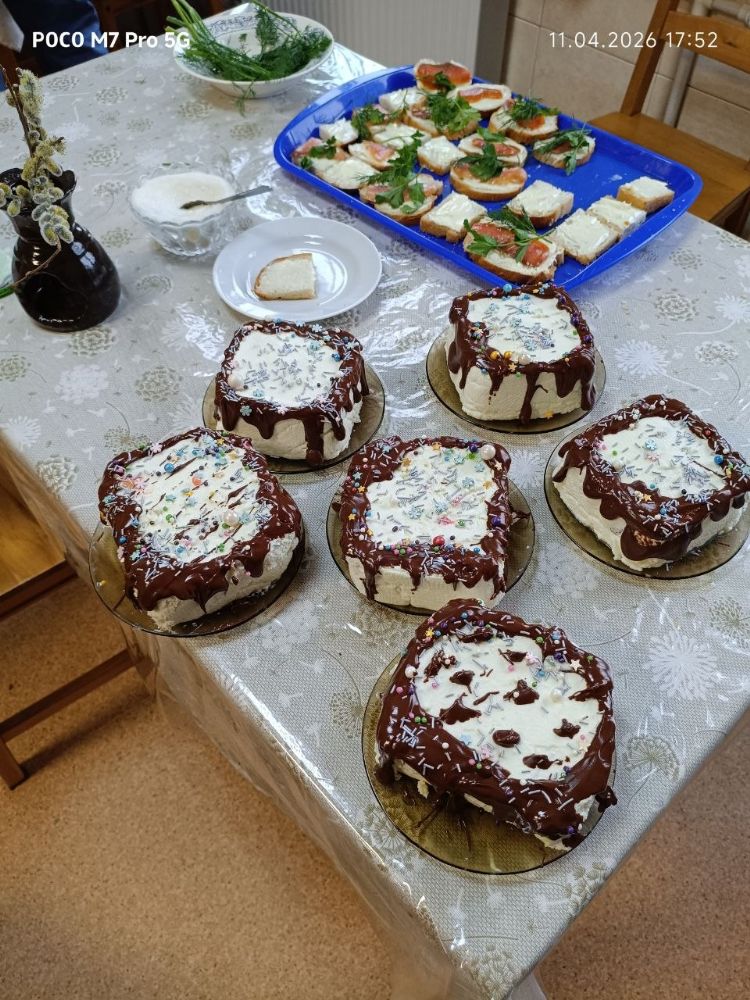 По завершении трудового дня волонтёры возвращаются в свой домик с радостной «добычей» — тёплыми, ещё не освящёнными куличами, словно предвкушая близость великого торжества.