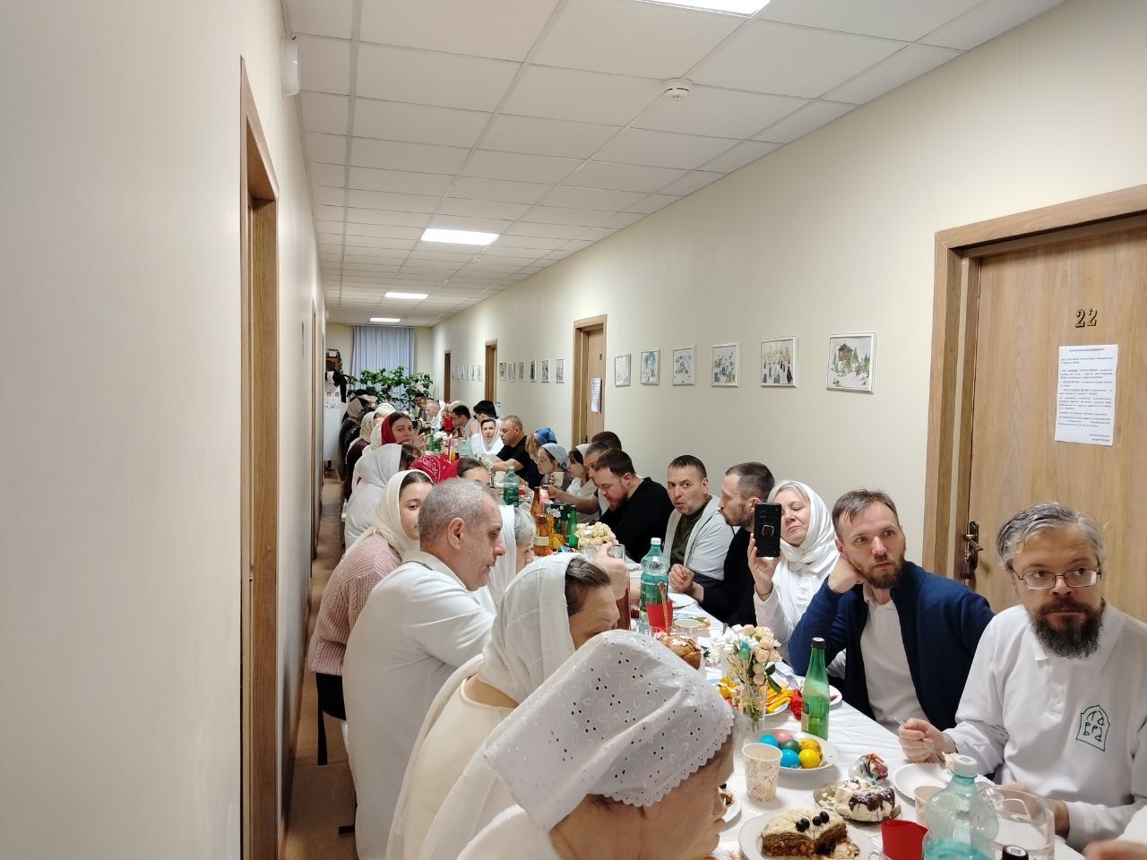 Особые слова признательности мы выражаем всем волонтерам, которые принимали активное участие в подготовке к торжествам. Даже в саму пасхальную ночь наши ребята дежурили в храмах. После ночной Литургии всех ждало большое утешение. Похристосоваться с волонтерами и разделить разговление за праздничным столом пришли иеромонах Борис и иеродиакон Евгений!
