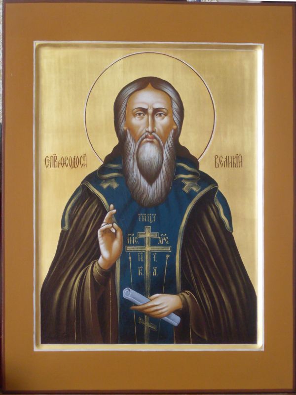Преподобный Феодосий Великий жил в V-VI вв. и был основоположником общежительных монастырей. Он родился в Каппадокии от благочестивых родителей. Стремясь к отшельнической жизни, святой Феодосий поселился в Палестине в пустынной пещере, в которой, по преданию, ночевали три волхва, пришедшие поклониться Родившемуся Спасителю мира. В ней он прожил 30 лет в великом воздержании и непрестанной молитве. Позже, ввиду множества, приходящих к нему учеников, основал первый общежительный монастырь, или лавру, по уставу святителя Василия Великого. По завету преподобного Феодосия, лавра выполняла служение ближним, оказывая помощь всем бедным и давая приют странникам. Скончался Преподобный в возрасте 105-ти лет, в 529 г.
