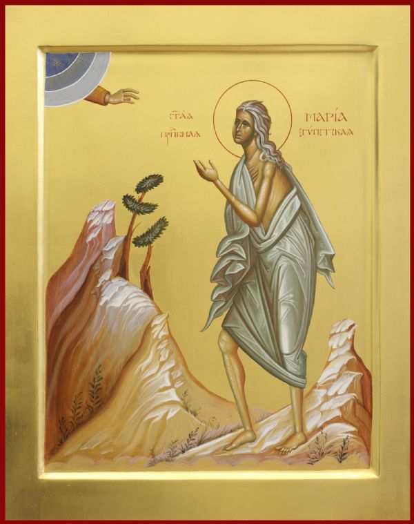 В двенадцать лет Мария ушла из своего дома в городе Александрии. Она увлеклась порочной жизнью и прожила так 17 лет пока милостивый Господь не обратил ее к покаянию. Однажды в Иерусалиме Мария направилась в храм Воскресения Господня, но невидимая сила остановила ее. Мария поняла, что Господь не допускает ее войти в святое место за ее нечистоту. Охваченная ужасом, она раскаялась о своих грехах, пообещала исправить свою жизнь. Из Иерусалима она удалилась в суровую и безлюдную Иорданскую пустыню и там почти полстолетия провела в полном уединении, в посте и молитве. Так суровыми подвигами Мария Египетская совершенно искоренила в себе все греховные пожелания и соделала сердце свое чистым храмом Духа Святого. В Серапионовой палатке Лавры хранится частица ее святых мощей.