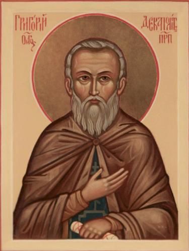 Преподобный Григорий Декаполит жил в VIII в. Он с детства полюбил храм Божий и с благоговением читал Священное Писание. Чтобы избежать женитьбы, на которой настаивали родители, святой тайно ушел из дома. Всю свою жизнь он провел в странствии: был в Константинополе, Риме, Коринфе, Солуни, некоторое время подвизался в пещере на Олимпе. Всюду преподобный Григорий проповедовал Слово Божие, обличал иконоборческую ересь, укреплял веру православных. Своими подвигами и молитвой святой Григорий стяжал благодатные дары пророчества и чудотворения. Достигнув чистоты сердечной, он удостоился слышать Ангельское пение во славу Святой Троицы.