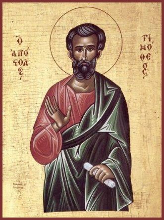 Апостол Тимофей был ближайшим учеником и сотрудником св. ап. Павла. Происходил из города Литры в Малой Азии. Апостол Павел после крещения Тимофея, увидев в нем ревность к христианской вере, взял его с собою, и с этого времени он сделался неотлучным спутником и сотрудником своего учителя. Впоследствии, после проповеднических трудов в разных городах и селениях, ап. Павел рукоположил Тимофея в епископы Ефесской Церкви, написал к нему два послания. Предчувствуя свою близкую кончину в Риме в темнице, апостол просил Тимофея прийти к нему на последнее свидание. Апостол Тимофей был свидетелем его мученической кончины. Св. Тимофей пятнадцать лет был епископом в Ефесе и скончался мученической смертью в 96 г.