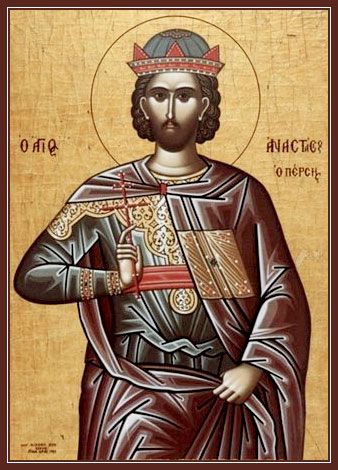 Святой Анастасий родился в Персии. Отец его Вав был магом, знаменитым учителем чародейства, чему обучил и сына. Анастасий, служа воином у персидского царя Хозроя, услышал о чудесах от Животворящего Креста Господня, и стал расспрашивать о земной жизни Спасителя. Его сердца коснулась благодать Божия, и в душе затеплился огонь веры. Когда он был послан на войну в Грецию, то, дойдя до г. Халкидона, остался жить у перса-христианина, который наставил его в истинной вере. Придя в Иерусалим, он принял крещение и поступил в монастырь, где подвизался в течение семи лет. Ему было открыто, что его ожидает мученическая кончина за Христа.