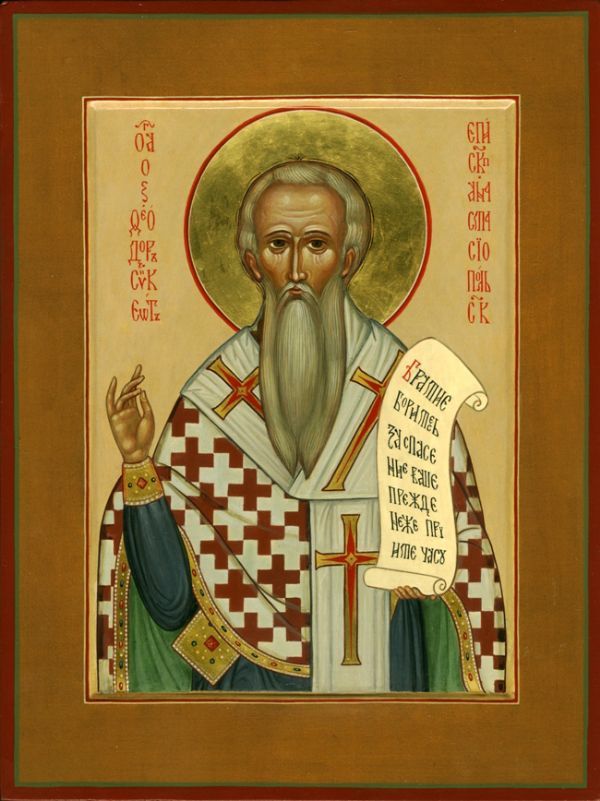 Преподобный Феодор Сикеот жил в середине VI в. Свое второе имя он получил по названию родного села - Сикеи, близ города Анастасиуполя в Малой Азии. Вся жизнь Феодора оказалась связана с великомучеником Георгием и его молитвенным заступничеством. Когда мальчику исполнилось шесть лет, мать решила подарить ему золотой пояс, чтобы Феодор стал смелым воином. Но ей явился великомученик Георгий, который открыл женщине, что Феодору уготован путь служения Господу. В четырнадцать лет юноша покинул дом и вырыл себе пещеру неподалеку от храма святого Георгия. Монашеский постриг он принял в Иерусалиме. Феодор вернулся на родину и продолжил жить при церкви великомученика Георгия. Он много постился, любил молитвенное уединение и не искал общества людей. Но вскоре стало известно о том, что по молитве иеромонаха Феодора происходят исцеления, а предсказанное им сбывается. К маленькой церкви потянулись люди. Жители Анастасиуполя упросили Феодора стать их епископом. Праведник тяготился этим бременем и вскоре отказался от него, но прежде немало послужил Церкви. По преданию он оставил пророчество о бедствии, ожидавшем империю - о ереси иконоборчества. Оно сбылось - более ста лет власти в Византии запрещали почитать и хранить святые иконы.