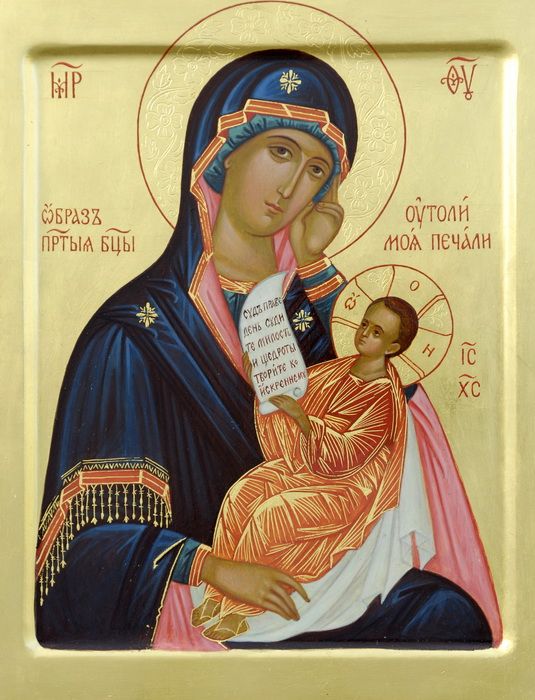 Икона Божией Матери, именуемая «Утоли моя печали», прославилась в Москве многими чудесами ещё во второй половине XVIII в., а празднование ей было установлено в 1760 г. Особо почитаемый список этой иконы находится в тюремном храме города Сергиева Посада. Храм в честь иконы Божией Матери «Утоли моя печали» был здесь с самого начала, и был построен по благословению наместника Антония (Медведева) в 1872 г. А в 1989-м он получил свое второе рождение: храм вновь был открыт и вплоть до настоящего дня опекается Троице-Сергиевой лаврой. Надпись на иконе гласит: «Суд праведен судите, милость и щедроты творите кийждо ко искреннему своему; вдовицу и сира не насильствуйте и злобу брату своему в сердце не творите».