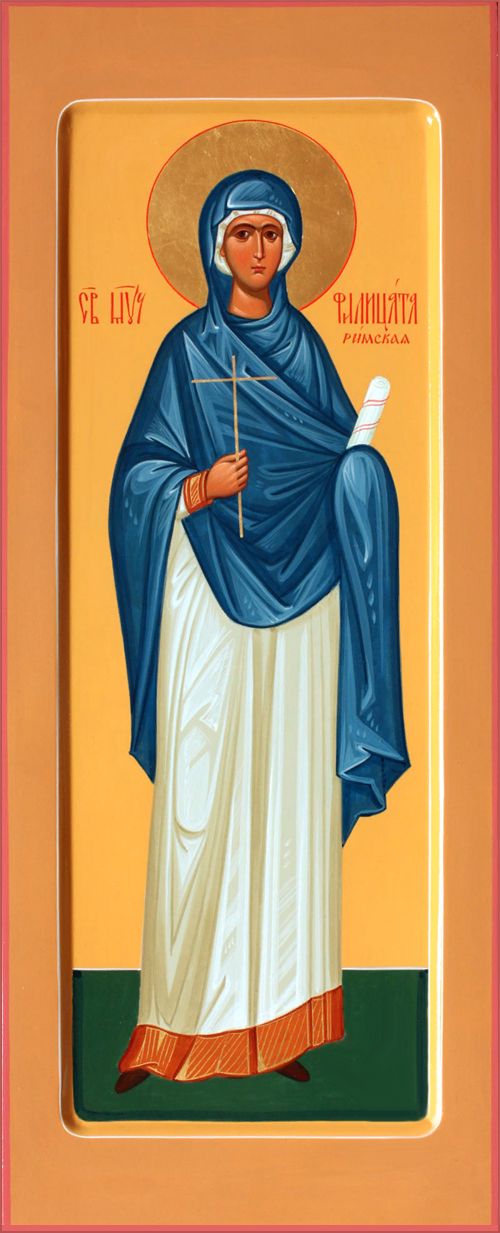 Святая мученица Филицата имела семь сыновей: Ианнуария, Феликса, Филиппа, Сильвана, Александра, Виталия и Марциала. Она была родом из богатой римской семьи. Жрецы обвинили ее в оскорблении богов через распространение христианской веры. Святая Филицата раздала всё свое имение и вместе с сыновьями открыто исповедала веру во Христа. Всех их предали мучениям. Святая Филицата, видя страдания своих сыновей, молила Бога, чтобы они устояли в подвиге и прежде нее вошли в Царство Небесное. Все сыновья мученически скончались на глазах матери. После них и сама святая Филицата претерпела мученическую кончину. Святая семья пострадала в Риме около 164 года. Мученице Филицате святитель Григорий Двоеслов посвятил похвальное слово в третьей беседе, произнесенной в храме ее имени. Частица святых мощей мученика Сильвана находится в мощевике Духовского храма обители преподобного Сергия.