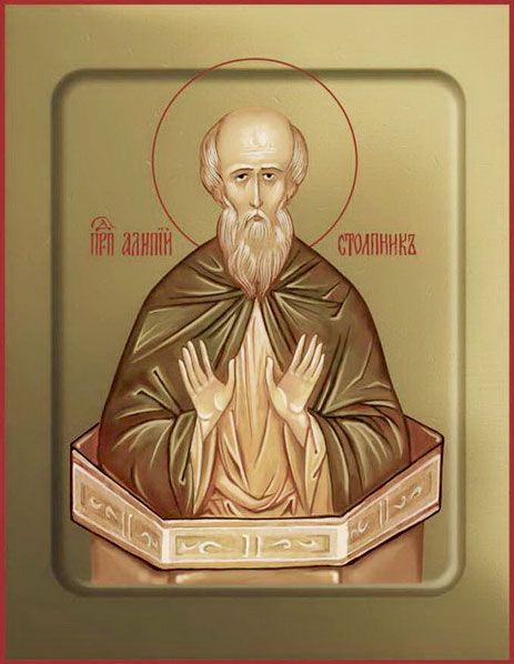 Преподобный Алипий Столпник родился в 522 г. в г. Адрианополе в Пафлагонии. Мать его, благочестивая христианка, рано овдовела и, зная о Божественном призвании сына, поручила его воспитание Феодору, епископу Адрианопольскому. За богоугодную жизнь епископ посвятил св. Алипия в сан диакона. Однажды преподобному, сопровождавшему своего владыку в Константинополь, явилась в сонном видении св. мученица Евфимия и сказала, чтобы он возвратился на родину и на месте заброшенного языческого кладбища основал церковь в честь ее святого имени. Преподобный исполнил Божественное указание и положил начало подвижнической жизни. Рядом с храмом, под открытым небом, на верху языческого гроба святой соорудил себе столп, на котором подвизался 53 года в непрестанных молитвах к Богу, поучая и наставляя многих, приходящих к нему. Жившие на языческом кладбище бесы искушали подвижника, но побежденные молитвой и стойкостью святого, навсегда покинули это место. За свои подвиги избранник Божий удостоился благодатного дара пророчества, изгнания бесов и исцеления недугов. Постепенно около столпа возникли два монастыря: мужской и женский, в которых преподобный ввел строгие монашеские уставы и управлял ими до своей кончины. Почил преподобный Алипий в возрасте 118 лет.