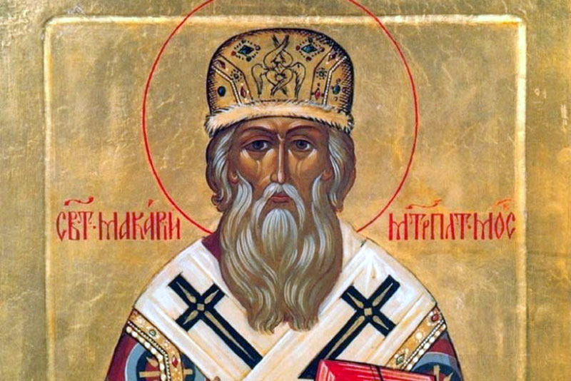 Святитель Макарий, митрополит Московский, родился в Москве около 1482 г. в семье благочестивых родителей. Род его не отличался знатностью, но было в нем много людей духовного сословия. По смерти родителей он ушел в монастырь. Став в 1523 г. архиепископом Новгородским, он берет на себя труд по собиранию и систематизации житий русских святых и сведению их в единый корпус Четий-Миней. В 1542 г. – поставление в митрополита Московского. В 1547 г. он венчал на царство первого русского царя. В 1547 и 1549 гг. святитель Макарий созывает в Москве два Собора, на которых была проведена большая работа по канонизации русских святых. Сам Святитель был канонизирован на Поместном Соборе Русской Православной Церкви в июне 1988 г.