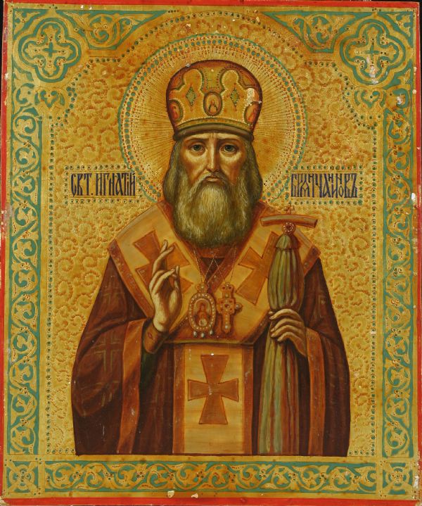 Святитель Игнатий родился в семье дворян. Происхождение и воспитание открывали перед ним двери самых аристократических домов столицы, но будущий святой подал прошение об отставке и удалился в монастырь. В 1857 г. архимандрит Игнатий стал епископом Кавказским и Черноморским. Святитель достойно управлял огромной епархией в условиях жестокой Кавказской войны. Несмотря на военные действия и реальную опасность попасть в заложники или быть убитым, он многое сделал для устройства епархии и распространения христианства на Кавказе. Тяжелая болезнь заставила его подать прошение об увольнении и удалиться в Николо-Бабаевский монастырь, где святитель Игнатий работал над духовными сочинениями.