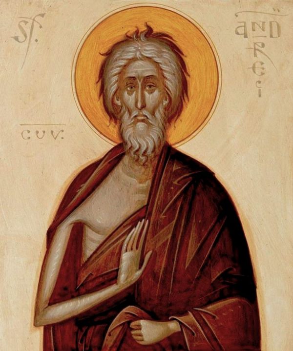 Блаженный юродивый Андрей жил в Константинополе, в X в. Он был славянин, но еще в детстве попал в плен и был продан в рабство. Еще в юности он полюбил бывать в храме и читать христианские книги. Однажды во сне Андрей увидел два войска. В одном были воины в светлых одеждах, в другом - черные и страшные бесы. Ангел держал в руках красивые венцы, которые должны были стать небесной наградой для воинов Божиих. Он призвал Андрея также пойти на подвиг ради Господа. Блаженный избрал подвиг юродства. Он ходил по улицам в рубище, просил милостыню и раздавал ее другим нищим. Благодушно сносил он побои, голод и жажду, стужу и зной. За свое терпение и смирение Андрей получил дар пророчества и прозорливости. Однажды во время молитвы во Влахернском храме святой Андрей увидел Богородицу, покрывающую молящихся Своим покрывалом-омофором. Это событие Церковь вспоминает во время праздника Покрова Пресвятой Богородицы.