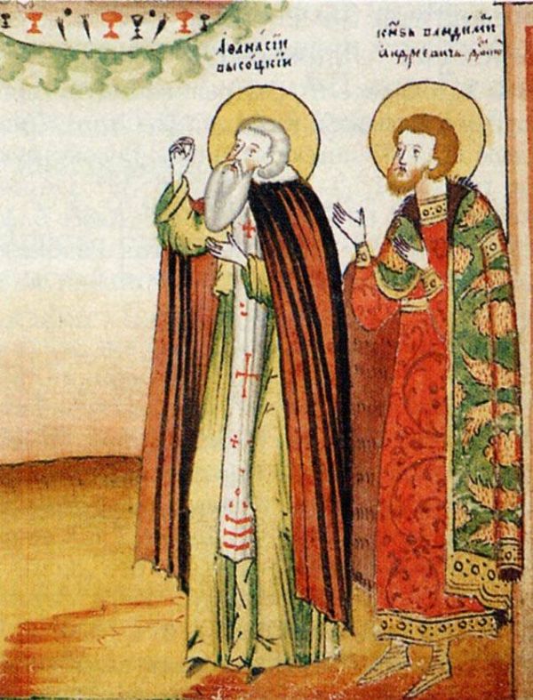 Ученик преподобного Сергия Радонежского. В одной из старших редакций жития преподобного Сергия об Афанасии сказано: «Бе бо мужь благоразумен, Божественых писаний исполнен, и многи книги писания руки его и доныне зело красны сведетелствуют, обретаются в похвалу чюдному и добродетелному житию его и мнозей мудрости». В 1374 г. преподобный Сергий Радонежский помог князю Владимиру Серпуховскому (Храброму) основать близ Серпухова Высоцкий монастырь, «състави общее житие зело благоразумне» и благословил на игуменство святого Афанасия.