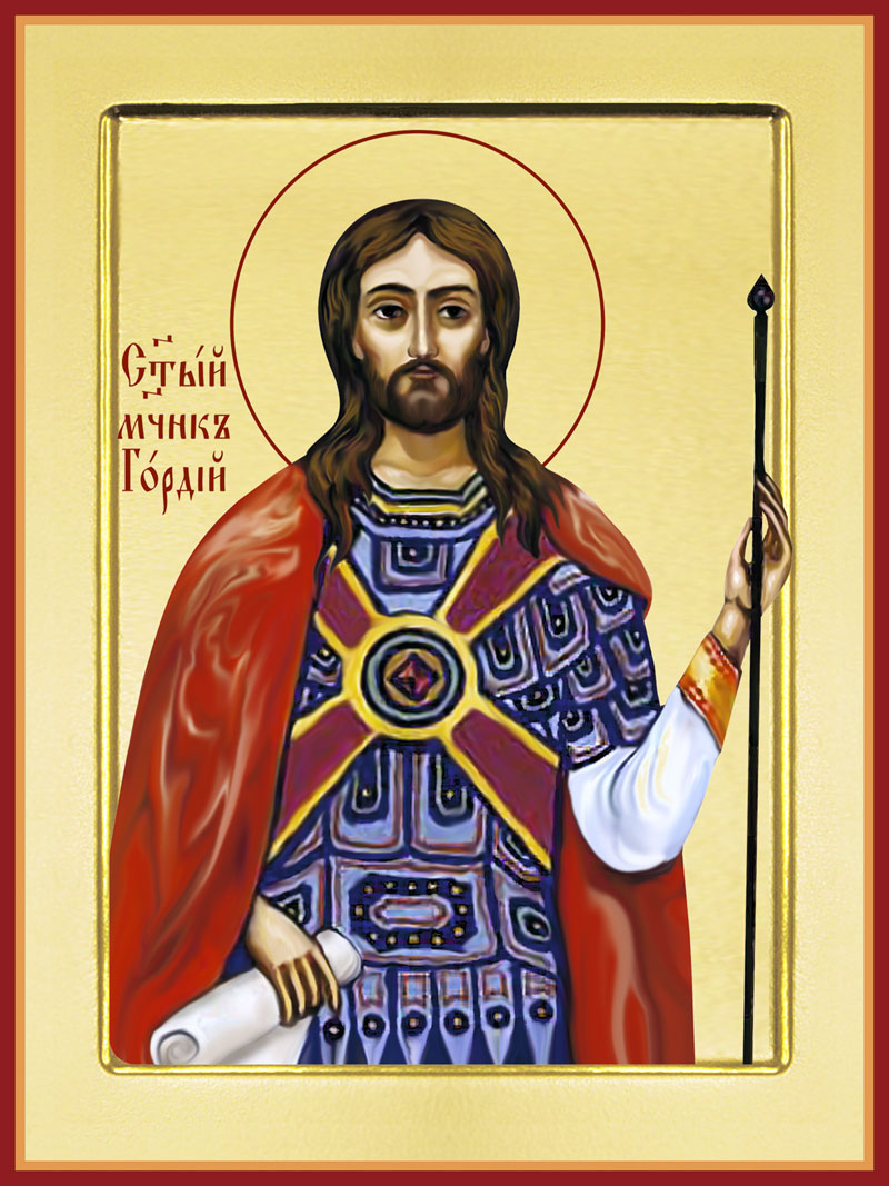 Мученик Гордий родился в конце III в. в городе Кесарии Каппадокийской в христианской семье. В зрелом возрасте поступил на военную службу и, проявив мужество и воинское искусство, был назначен сотником. Во время гонения на христиан в начале IV в. он оставил мир и удалился в пустыню, чтобы в подвиге добром приготовить себя к исповеданию имени Христа Спасителя. В 320 г. Гордий открыто выступил перед префектом города в защиту христиан. Его схватили и после страшных истязаний отсекли голову.