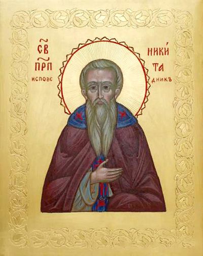 Преподобный Никита Исповедник, игумен обители Мидикийской, родился в Кесарии Вифинской (северо-запад Малой Азии) в благочестивой семье. Мать умерла на 8-й день после его рождения, и отец, по имени Филарет, постригся в монахи. Ребенок остался на попечении бабушки, воспитавшей его в истинно христианском духе. С юно-шеских лет святой Никита прислуживал в церкви и находился в послушании у отшельника Стефана. По его благословению святой Никита направился в Мидикийский монастырь, где игуменом был святой Никифор.
