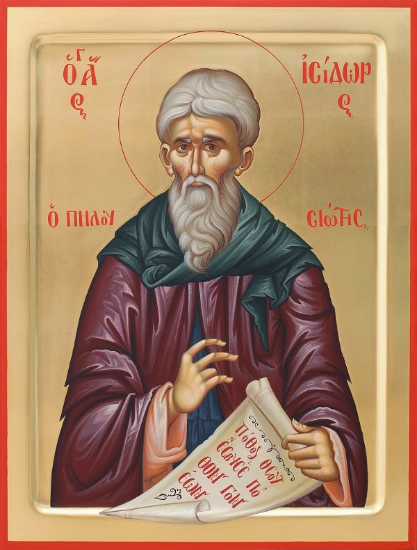 Преподобный Исидор Пелусиот происходил из Александрии от богатых и благородных родителей, был очень образован. В молодости, оставив родителей и богатство, удалился в пустыню близ г. Пелузии при устье Нила в Египте, отчего и зовется Пелусиотом. Он прославился многолетним строгим подвижничеством и тем привлек к себе многих иноков. Избранный в настоятели обители, он внушал братии словом и своим примером скромность в одежде, хранение безмолвия, скудость пищи и благотворительность к бедным. За свои творения Исидор почитается одним из великих отцов Церкви. Все сочинения его глубоки по содержанию и просты по изложению. Скончался святой Исидор около 436 г.