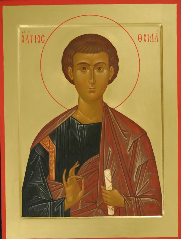 Был родом из галилейского города Пансады, занимался рыболовством. Услышав благовестие Иисуса Христа, все оставил и последовал за Ним. Спаситель избрал Фому в число Двенадцати Своих учеников. По свидетельству Писания, апостол Фома не поверил Воскресению Христа, но впоследствии, раскаявшись в своем неверии, обошел со своей проповедью почти всю землю. По церковному преданию, апостол Фома основал христианские Церкви в Палестине, Месопотамии, Пирфии, Эфиопии и Индии. Проповедь Евангелия апостол запечатлел мученической смертью: за обращение ко Христу сына и супруги правителя индийского города Мелипура был заключен в темницу, претерпел пытки и, пронзенный пятью копьями, отошел ко Господу.