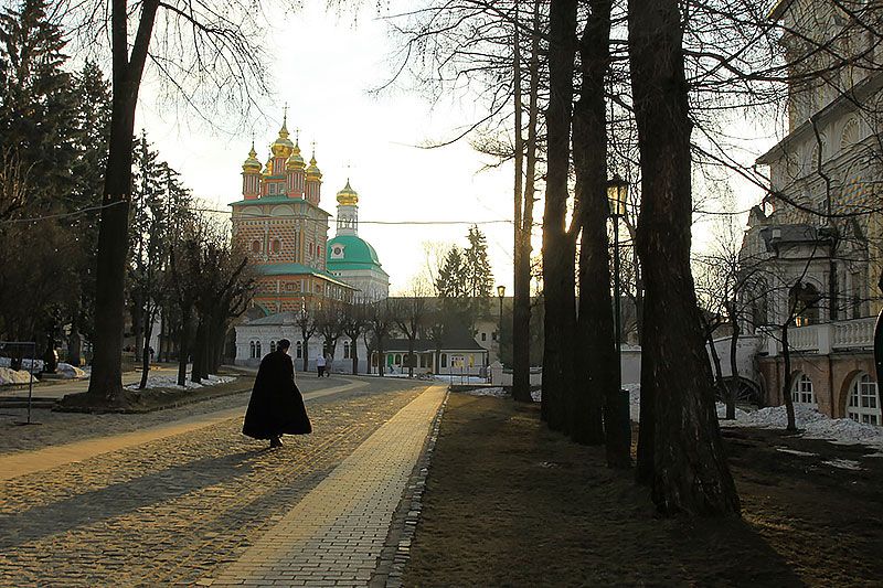 Святые отцы говорят, что монастырь — это место, где небо сходится с землей. Монастыри называют ″легкими Земли″. Не будь их, наш неспокойный мир давно задохнулся бы. А здесь за него, не успевающего в суете найти время для молитвы, молятся и днем, и ночью. Каким был монастырь при жизни преподобного Сергия, мы можем представить себе только исходя из скудных сообщений его жития. На заре своего существования Троице-Сергиев монастырь – это всего-навсего один небольшой деревянный храм в безлюдном месте, в глухом лесу, на высокой горе, получившей позже название Маковец. Если мысленно отмерить по двадцать метров в каждую сторону от Троицкого собора, то можно представить себе, какую территорию первоначально занимал монастырь в первые годы своего существования. По словам Епифания Премудрого в ограде монастыря шумел лес, вокруг церкви виднелись пни и стволы срубленных деревьев, в деревянной церкви за недостатком свеч, пахло лучиной. В 1345 году (по другим сведениям в 1337 году) было положено начало святой обители как уединенной пустыни. Два брата, Стефан и Варфоломей, последнему из которых было всего 23 года, на небольшой полянке, ими же вырубленной, поставили небольшую церковь в честь Святой Троицы. Построенный ими храм не сохранился – в 1408 году во время нашествия татарского хана Едигея обитель была сожжена. Вновь собор был отстроен в 1422 г. учеником преподобного Сергия игуменом Никоном в честь и похвалу своему отцу и основателю обители.