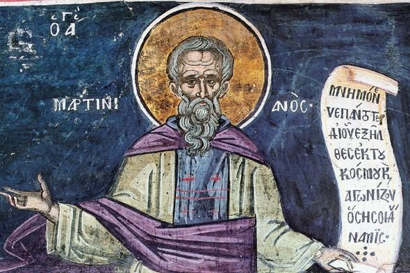 Исцелившись от ожогов, святой Мартиниан удалился на необитаемый скалистый остров и прожил под открытым небом несколько лет, питаясь пищей, которую ему время от времени привозил один корабельщик, а преподобный плел для него корзины.