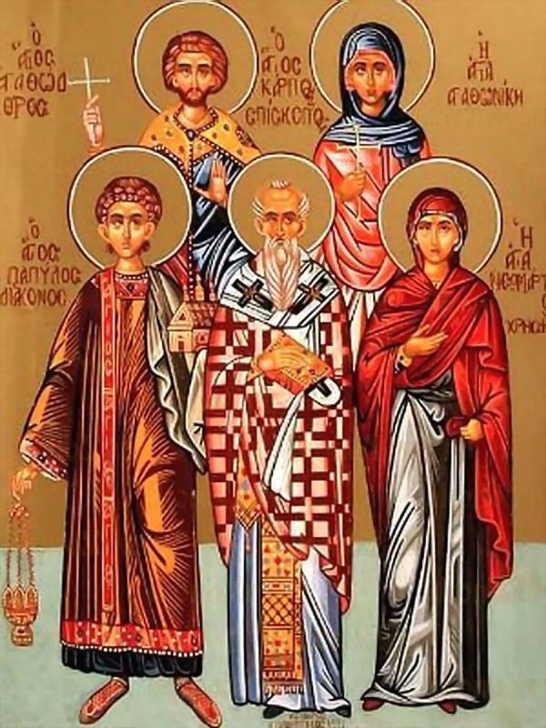 Священномученики Карп, епископ Фиатирский, Папила диакон, мученик Агафодор и мученица Агафоника