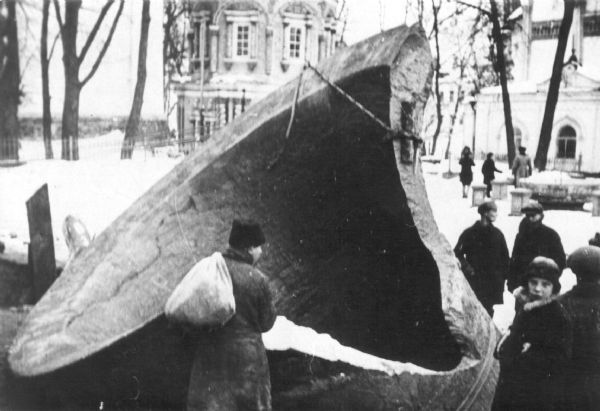 В январе 1929 года с колокольни Лавры богоборцами был сброшен «Царь-колокол», а затем на него «Годунов». Расправу с колоколами запечатлел в фотографиях и дневниковых записях Михаил Михайлович Пришвин, живший тогда в Посаде. Сегодня на эти снимки нельзя смотреть без боли. Вот что он написал: «Большой Царь, как большой доверился людям в том, что они ему ничего худого не сделают, дался опуститься на рельсы и с огромной быстротой покатился. Потом он зарылся головой глубоко в землю… Все воскресенье и понедельник горел костер под Царем, чтобы оттаяла земля и колокол упал на отбитые края ближе к месту предполагаемого падения Годунова. Рабочие на колокольне строили клетку под Годунова. Царь подкопали и подперли домкратом. Лебедками и полиспастами повернули Царя так, что выломанная часть пришлась вверх. Это для того, чтобы Годунов угодил как раз в этот вылом и Царь разломился… Так окончил свою жизнь в 330 лет печальный колокол, звуки которого в Посаде привыкли соединять с несчастьем и смертью из-за того, что когда в Лавре служились панихиды по Годуновым звонили в этот колокол».