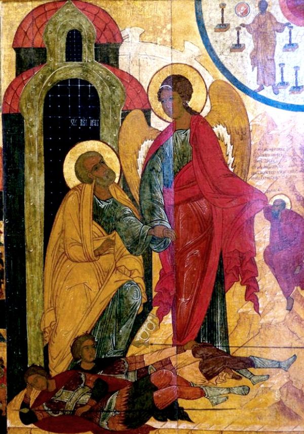 Когда ангел освободил апостола Петра из темницы, куда заключил его Ирод Агриппа, то некоторые из верующих взяли те вериги (железные цепи), в которые закован был святой апостол, и хранили их как святыню. От них больные получали исцеление.
