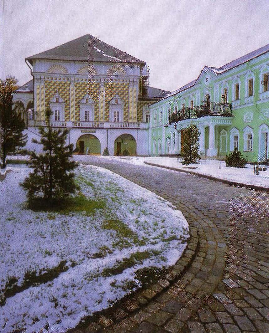 Церковь преподобного Сергия с Трапезной палатой, часто называемая также Трапезной церковью, расположена на южной стороне Троице-Сергиевой Лавры. Она была сооружена по повелению царей Иоанна и Петра Алексеевичей в 1686–1692 гг. Торжественное освящение храма было приурочено к 300-летию преставления преподобного Сергия. Освятил церковь патриарх Адриан в присутствии всего царствующего дома в 1692 году. Трапезный храм отличает обилие наружного наряда: стены почти исчезают в декоре из высоких гладкоствольных колонн и полуколонн, расставленных поочередно или попарно, и малых витых колонок, обрамляющих окна и двери. Стены, украшены многослойной резьбой и лепниной. Весь этот затейливый убор перевит лозами и ярко раскрашен, а оставшаяся часть стены расписана разноцветными красками. Паломнику, вошедшему в обитель, грандиозная постройка предстает как подобие плывущего гигантского корабля, а подклет с волнообразной чередой арочных сводов создает впечатление движения. Зрительный образ имеет прямые параллели с богословским осмыслением Божиего храма как корабля спасения. Удивительное творение, по достоинству оцененное современниками, явилось одним из самых выдающихся памятников архитектуры московского барокко.