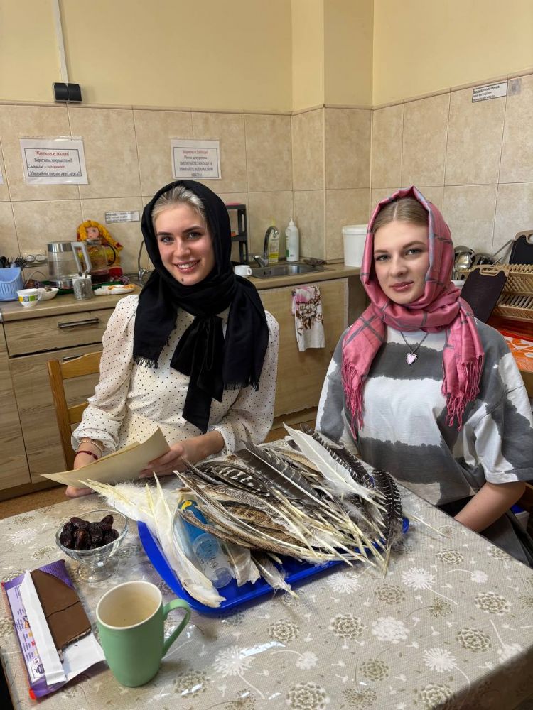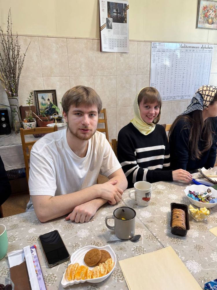 Уже вечером в гости к волонтерам пришли иеромонах Борис и Виктор Буняк из «Русской Общины». За чаем и драниками поговорили о прошедшей седмице, поделились впечатлениями и переживаниями. Желающие задавали батюшке вопросы. Слушающим отец Борис также напомнил о важности Соборования в пост и рассказал, какие труды нас ждут в преддверии Вербного воскресенья.