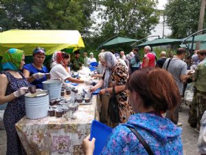 Своевременное кормление и поддержание чистоты на площадке обеспечивали члены общественного движения «Сорок сороков». Пришедшие на трапезу гости могли отведать на выбор гречневую кашу с тунцом, рис с зеленью, или пшенную кашу с тыквой, а также душистый чай с лимоном и лаврский хлеб. По окончании трапезы гостей ожидали подарки: Святое Евангелие и духовная литература. В общей сложности в благотворительной трапезе поучаствовало более 2000 человек.