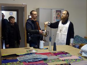 Иером. Феодор окропил святой водой корпуса и номера гостевого комплекса, и пожелал всем труженикам Слободы помощи Божией в трудах.