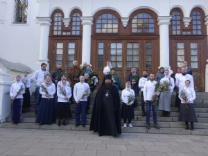В субботу, накануне Вербного воскресенья, епископ Парамон поздравил волонтеров с праздником Входа Господня в Иерусалим и поблагодарил за ежедневную работу в Лавре и, в частности, за помощь в подготовке монастыря к Христовой Пасхе.