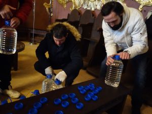 И уже днем мы по традиции набирали воду для наших подопечных. Более 200 бутылей с водой нам было необходимо подготовить, чтобы позже развести великую Святыню дедушкам и бабушкам, которые совсем немощные сейчас, чтобы прийти за водичкой самостоятельно.