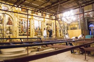 В храме установлены строительные леса, чтобы в ближайшие дни начать чистку паникадила!