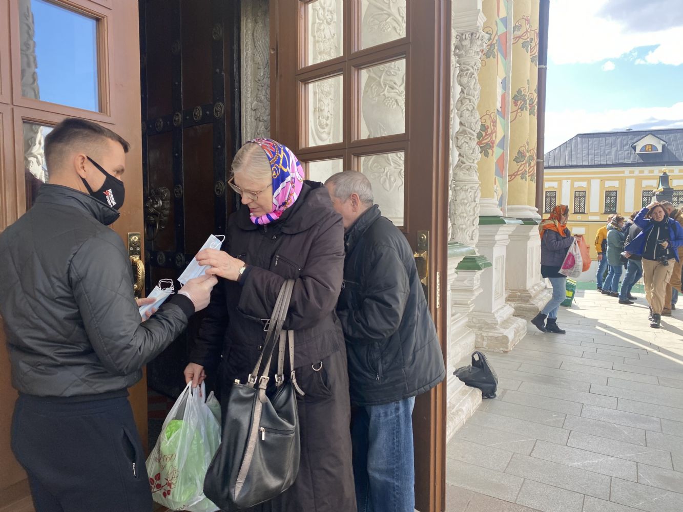 В Великую Субботу с 8.00 утра и в ночь Святой Пасхи волонтеры обители раздавали защитные маски. Было задействовано 24 человека, и роздано было более 15000 масок. На Светлой седмице волонтеры обеспечивали порядок при посещении паломниками колокольни, а в пятницу вечером - помогали при нарезке артоса.