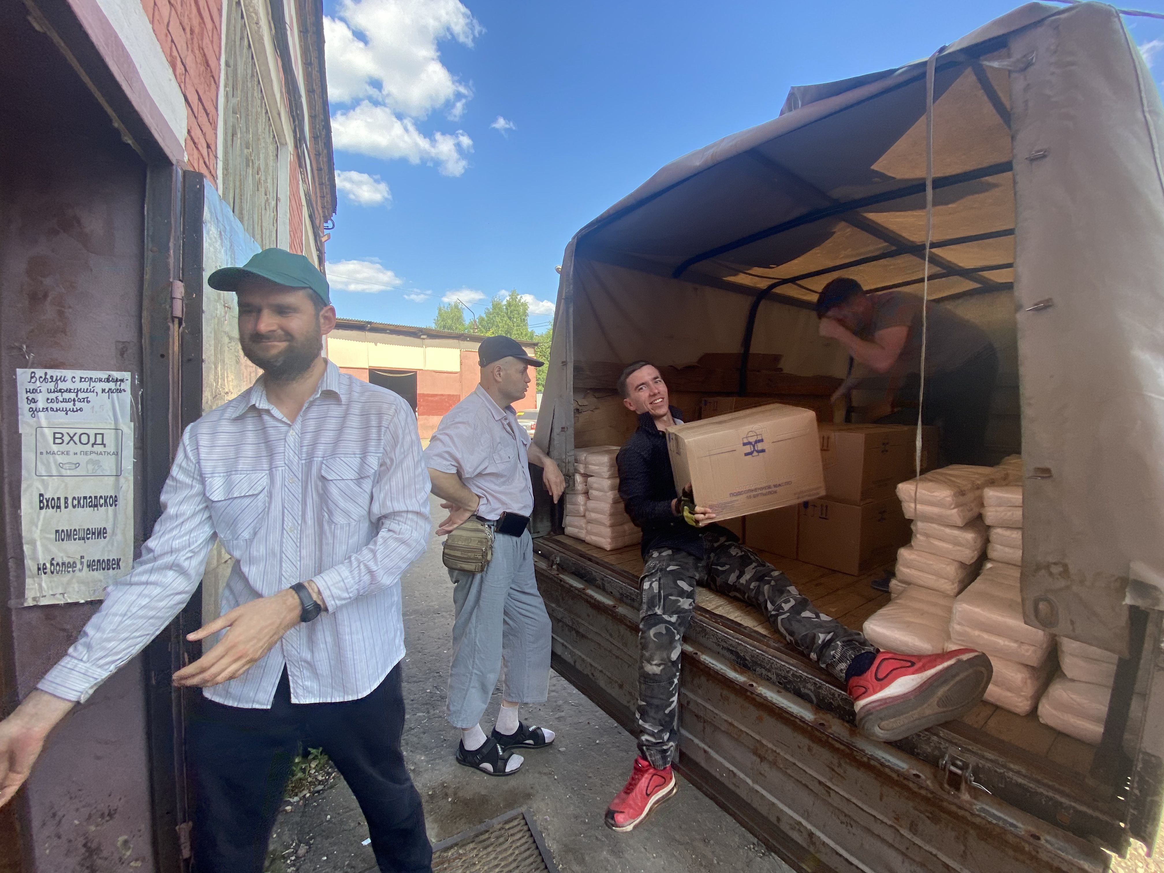 Сегодня продукты были закуплены, наши трудники и волонтеры получили продукты на базе, все выгружено в нашем фасовочном цеху и сразу подготовлено для завтрашней фасовки.