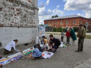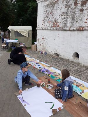У Уточьей башни сегодня, 4 августа, мы продолжили наш проект «Рисуем в свое удовольствие». Жители города и паломники с детьми, посещавшие сегодня Лавру, с удовольствием поучаствовали в нашем проекте!