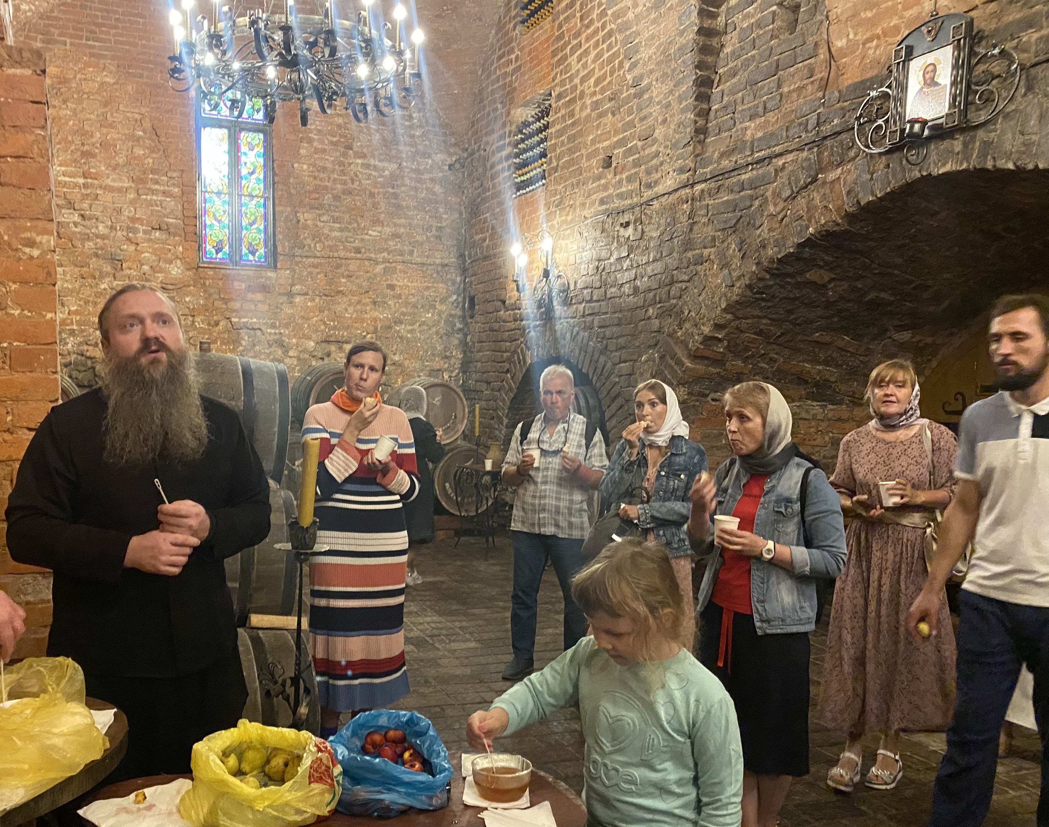 Здесь же волонтеров угостили освящённым мёдом с братской трапезы в честь Медового Спаса.