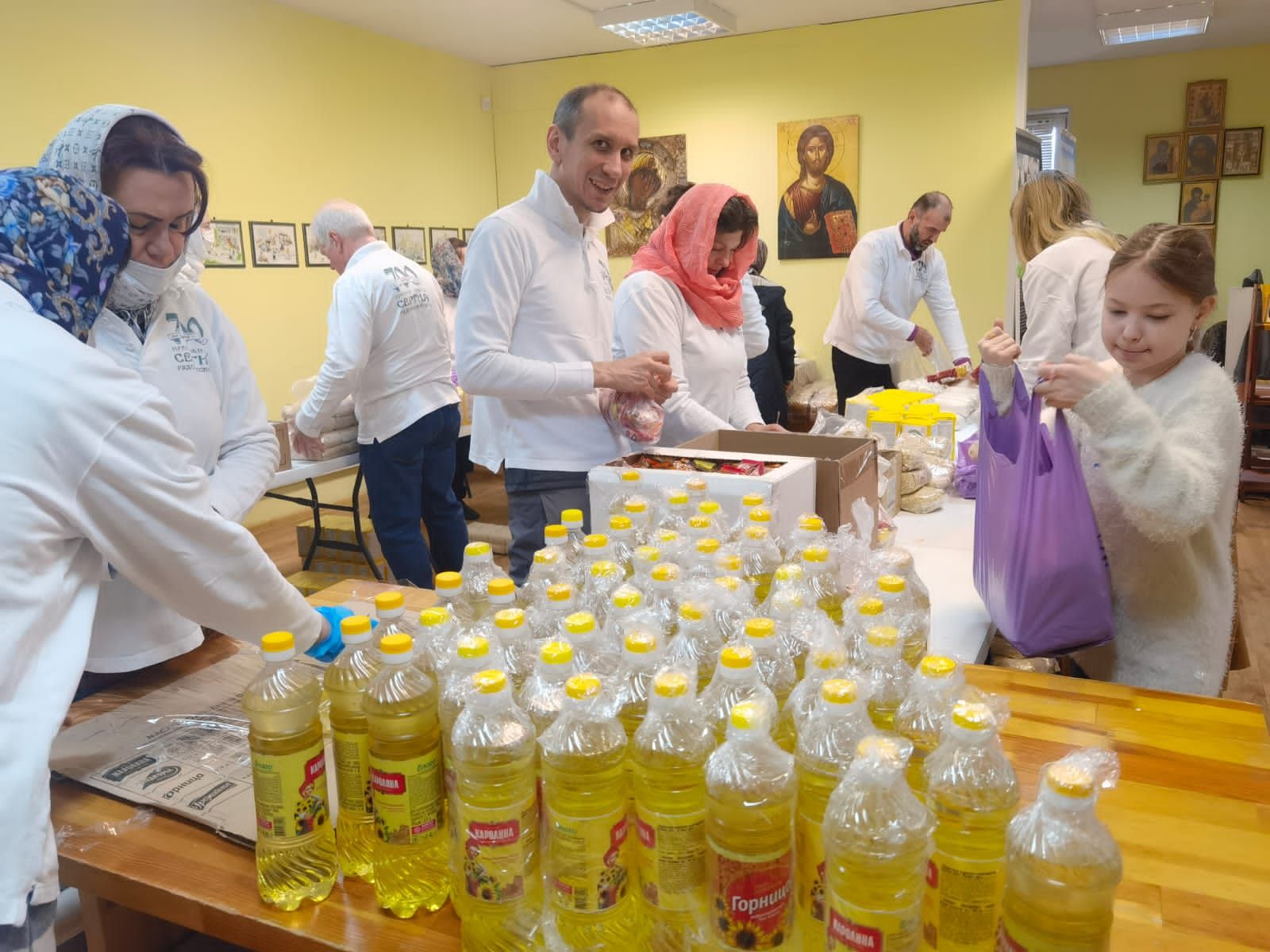 Сегодня состоялась фасовка продуктовых наборов для подопечных Социальной службы Свято-Троицкой Сергиевой Лавры.