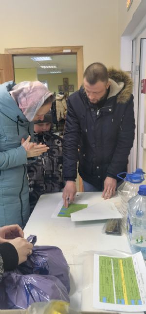 Автоволонтеры, получив наборы, отправились по маршрутам.