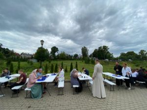 Социальная служба работала 24/7, волонтеры стекались к нам со всей страны и ближнего зарубежья. Многие последний раз виделись друг с другом 9 лет назад на 700-летии со дня рождения Преподобного, когда зародилось наше волонтёрское социальное служение. Преподобный и в эту дату объединил большое количество людей, которые приехали в Обитель, потрудиться во славу Божию.