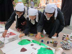 Это уже не первый их приезд в Лавру. В этот раз для гостей была проведена экскурсия по всем храмам обители, в том числе по маленьким храмам, которые открываются только на Пасху или на день памяти святого, или события в честь которого освящен храм. Также девочки поднялись на колокольню, поучаствовали в рисовании общего рисунка в проекте Соцслужбы «Свободный художник», после чего отправились на трапезу. Надеемся, что поездка прошла с пользой и ждем следующей встречи.