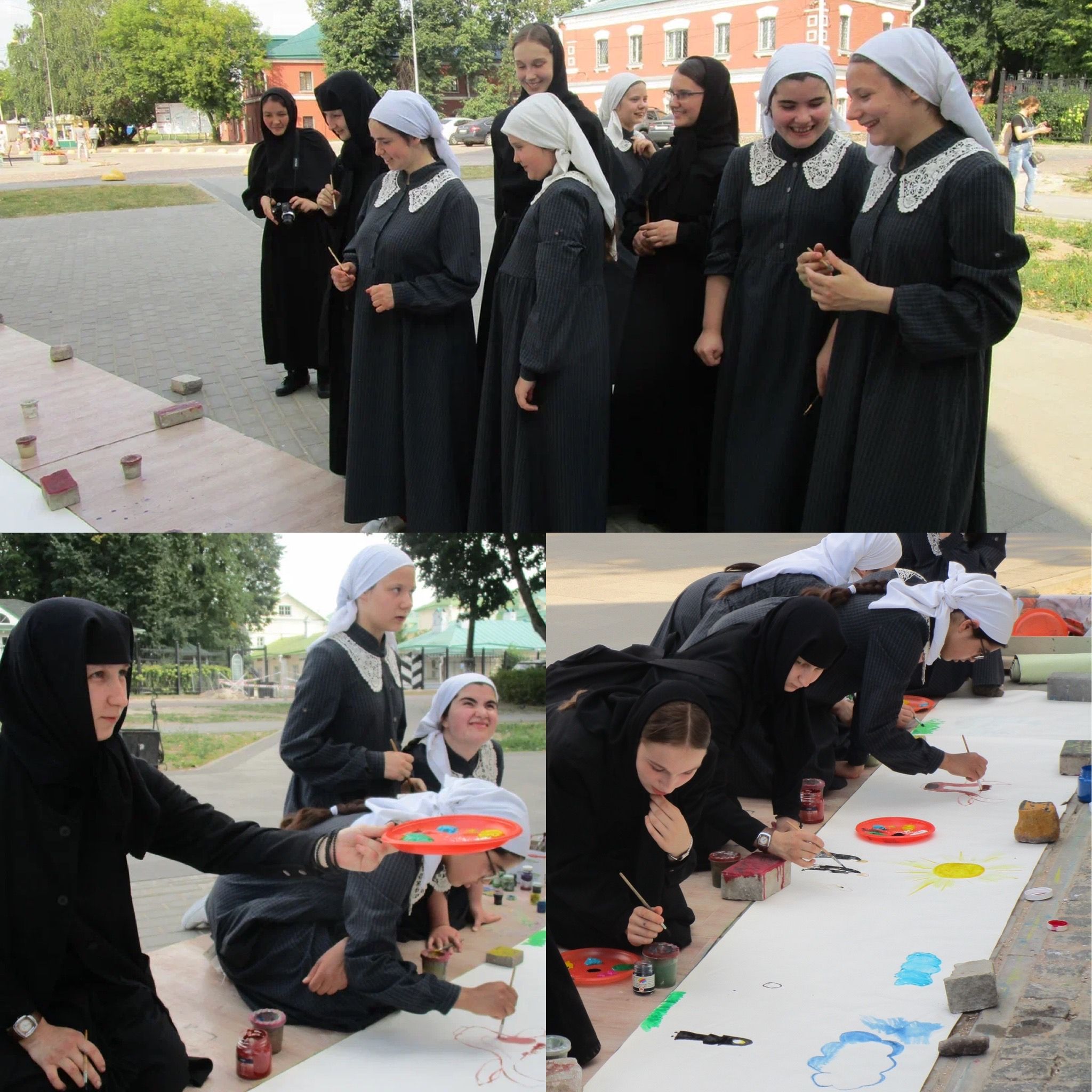 От души благодарим Соломко Светлану и юную Александру за поддержку проекта и ежедневную помощь в занятиях с детьми! Всех постоянных художников, которые регулярно приезжали к нам, чтобы под сводами стен святой Обители творить в своё удовольствие. К нам приезжали из соседних городов, например, из Александрова, специально, чтобы принять участие в ежегодном творческом проекте. Спасибо каждому и всем вместе!!