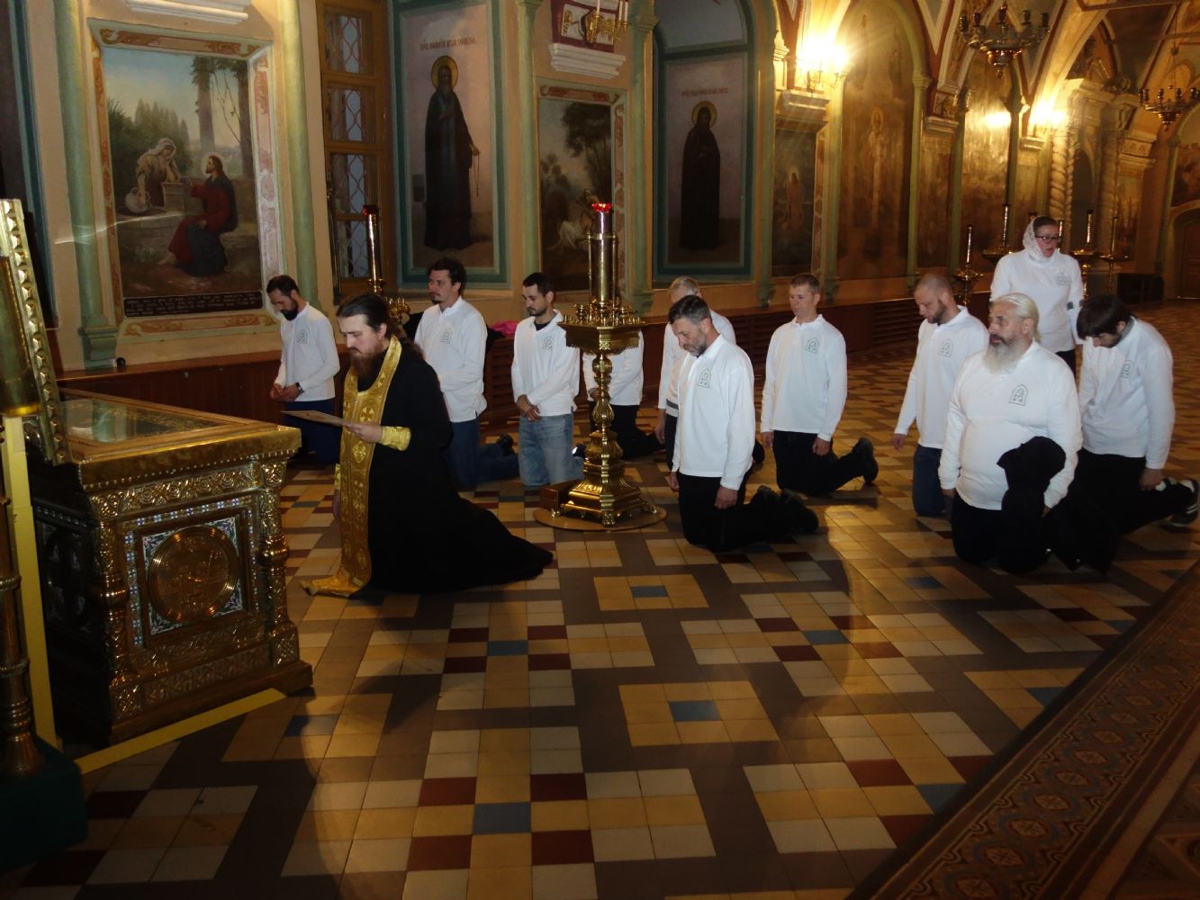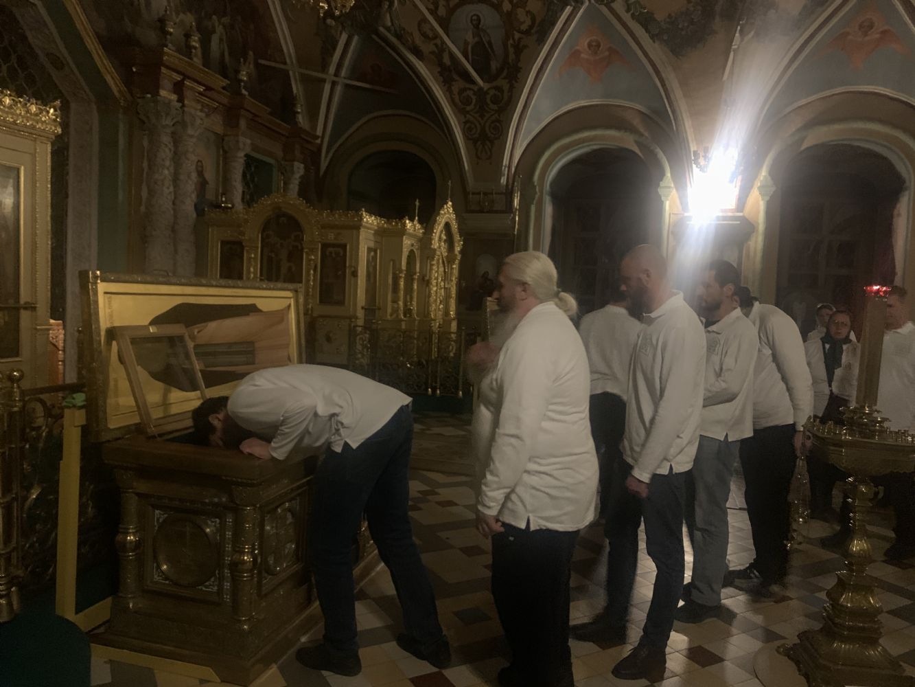 С приходом осени и наступлением учебной поры мы возобновляем просветительские и духовные встречи, а также беседы с насельниками нашей обители. В понедельник 12 сентября для всех волонтеров и трудников был организован необыкновенно духовный вечер. Мы шли в Лавру все вместе и еще не совсем понимали какая радость нас ждет. Вокруг темная ночь, ласковый теплый ветер, какой бывает в пору еще ранней осени и совсем пустая Лавра, скрывшая нас в ту ночь за тяжелыми железными воротами. Мы пришли помолиться. Нас встретил отец Варлаам и провел в Трапезный храм. Чтобы вы почувствовали, оказавшись душою наедине с Богом в храме, где кроме вас никого? Этот вопрос можно оставить без ответа, но каждый из добровольцев получил в этот вечер благодатное утешение и тихую радость в Боге. Иеромонах Варлаам отслужил молебен у мощей преподобного Максима Грека и преподобного Антония Радонежского. После открыли мощи, и мы приложились к святыне — это стало настоящим духовным подарком, ведь эти раки открывают единственный раз в году ко дню их памяти. После соборной молитвы мы посетили ризницу храма, где нам посчастливилось приложится к мощам, которые хранятся в этом святом месте: это мощи мучениц Веры, Надежды и Любови, Климента папы Римского, святых Петра и Февронии, мученика Вонифатия и преподобного Онуфрия Великого, Китайских мучеников и других святых. Впервые был вынесен на поклонение крест Дмитрия Донского с частицами животворящего креста Господня, который по древнему завету хранителей этой святыни никогда не должен покидать пределов России.