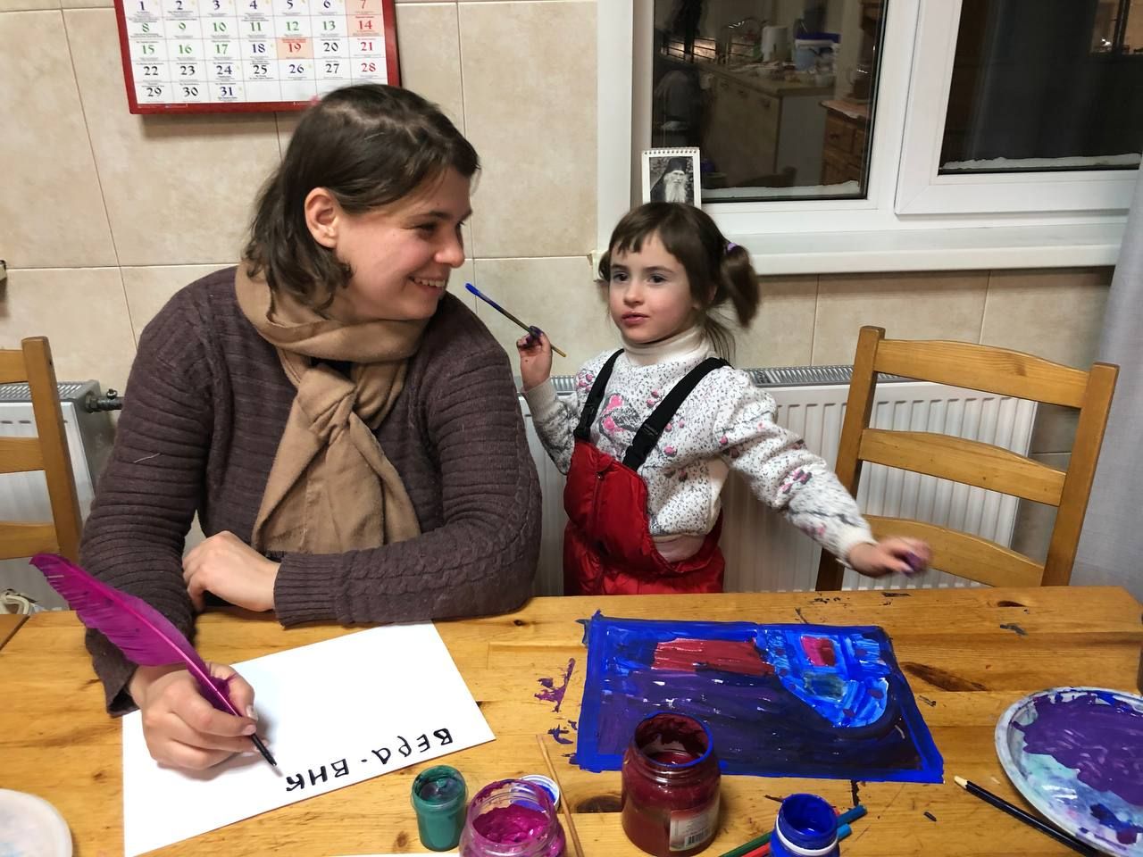 Было немного шумно, ребята обменивались впечатлениями от проделанной работы, все очень старались и всем очень нравилось. И опять все как будто вернулись в детство, в тот беззаботный возраст, когда хочется просто радоваться жизни, быть открытым ко всему новому. Мы вернулись в возраст нашей Любочки-дочки одной из приехавших экскурсанток, молодого преподавателя Виктории. Любочка - наше подрастающее поколение волонтёров, добрая и очень послушная девочка.