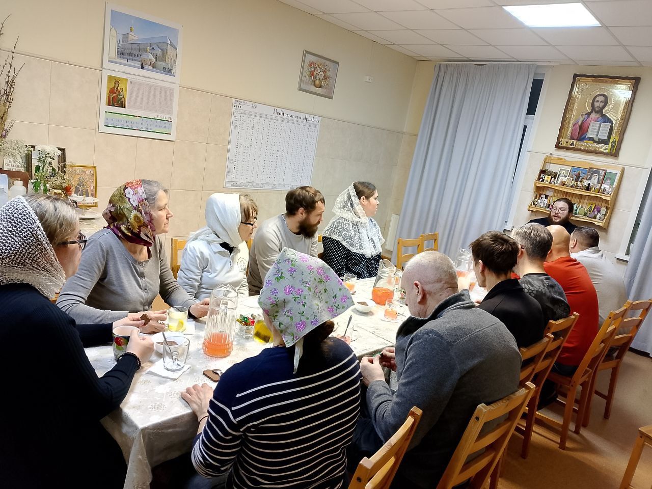 Воспитанники факультета церковно-певческого искусства Московской духовной академии подготовили для воинов небольшой пасхальный концерт. Они исполнили избранные пасхальные песнопения и песни военных лет.